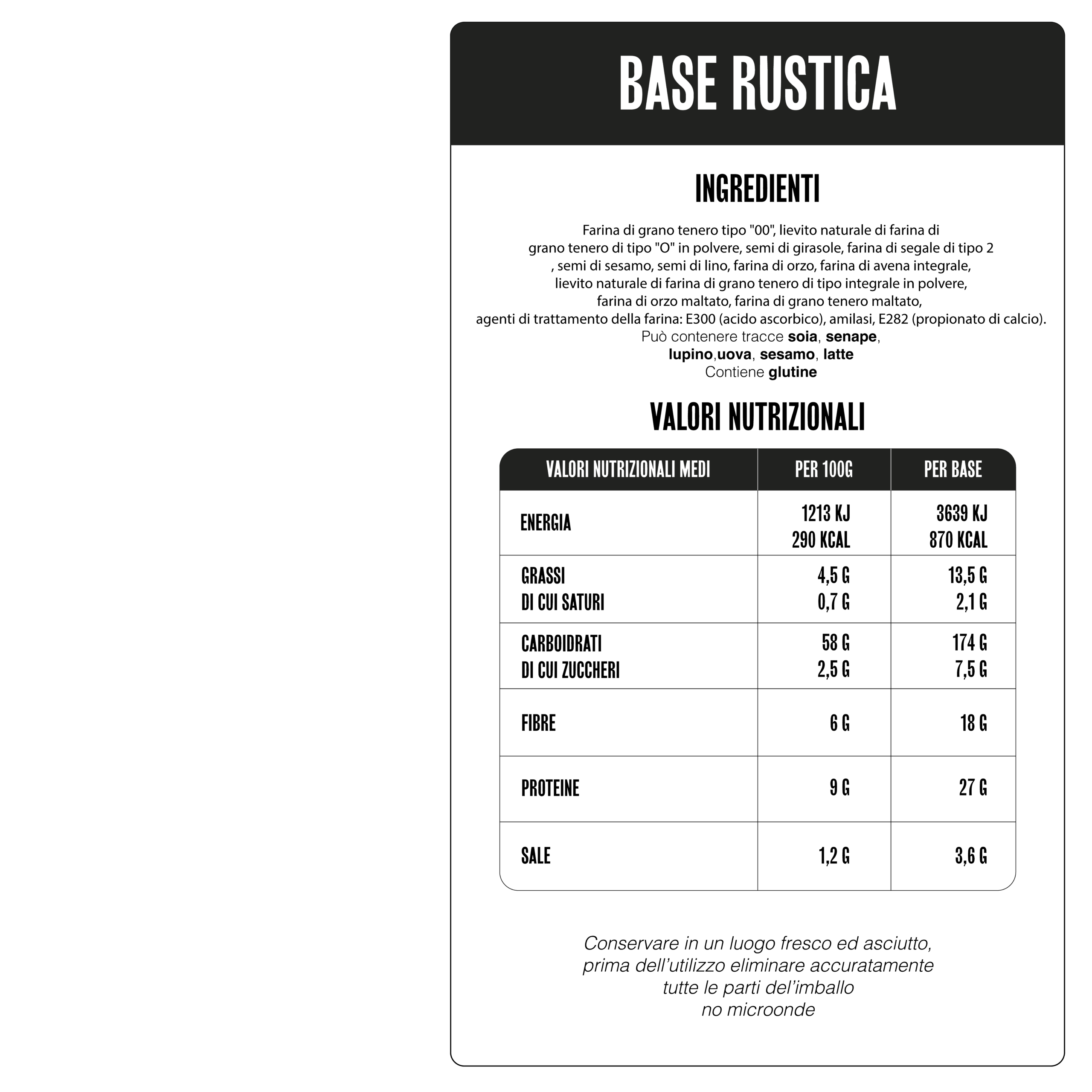 Grazie alla sua struttura equilibrata, questa base è ideale per ogni metodo di cottura: forno a legna, elettrico o ventilato. La combinazione di farine pregiate e una lavorazione attenta garantisce una pizza croccante fuori e soffice dentro, perfetta per abbinamenti rustici e saporiti.